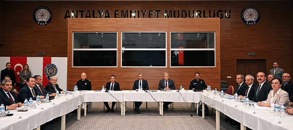 İl Emniyet Müdürlüğü’nde gerçekleştirilen toplantıya Vali Hulusi Şahin'in yanı sıra Antalya Büyükşehir Belediye Başkanı Muhittin Böcek, ilçe kaymakamları, ilçe belediye başkanları, İl Jandarma Komutanı Tuğgeneral Tarık Hekimoğlu, İl Emniyet Müdürü İlker Arslan, ilgili kurum müdürleri ve basın mensupları katıldı.