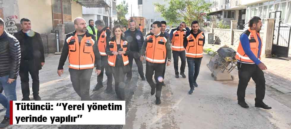 Başkan Tütüncü, “Mahallede olmazsanız masa başından, uzaktan telsizle, telefonla bu işleri takip etmek mümkün mü? Evet mümkün… Ama o iş o kadarlık oluyor. Ekiplerimizle işin başında olmaya, arazide olmaya, sahada olmaya son derece gayret gösterdik. Ve bunun bereketini de 15 yıldır hizmetlerimizin hem çeşitliliği, hem de büyüklüğü ve çokluğu bakımından netice olarak yaşadık. Netice almayı bildik. Öğrendiğim en önemli şey, uygulamaya çalıştığımız en birinci yöntem şu ki; İşin başında olmak lazım. Mahalli yönetim mahalleden yapılır. Yerel yönetim yerinde yapılır, sahada yapılır. Giyeceksin iş elbiselerini çalışanlarınızın yanında olacaksınız. Çalışanların elini sıkacaksınız, onların gönlünü alacaksınız, yaptıkları işin güçlüğünü göreceksiniz. O motivasyonu sağlayabilmek, sahada olabilmek işte bizim temel yönetim mantığımız, yaklaşımımız… 15 yıldır biz bu yöntemle çalıştığımız için, gerçekten az zamanda çok işler yaptık. 15 yılda yaptığımız işlere bakın. Başkalarının 25-30 yılda yapamayacağı işleri biz Kepez’e kazandırdık. “diye konuştu.