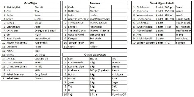 Genel Başkan Kınık, sosyal medya hesabından yardımda bulunmak isteyen iş insanları, firmalar ve hayırseverlere dayanışma çağrısında bulunarak ihtiyaç listesi paylaştı. Liste şöyle;