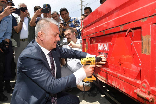 Vali Yazıcı’nın konuşmasının ardından Karayolları Trafik Haftası’nda İl Jandarma Komutanlığı tarafından yürütülen “Reflektör Tak Görünür Ol Kazaya Sebep Olma” Projesi kapsamında Hasyurt Tarım Fuarı’na katılan çiftçilerin traktörlerine reflektör takıldı. Proje kapsamında yaklaşık 3 bin çiftçiye reflektör hediye edildiği aktarılan fuarda traktör kazalarının en belirgin özelliklerinden birinin yollarda görünür olmadığından kaynaklandığının altı çizildi. Fuarda, traktörlerde kullanılan reflektör ve ışık tertibatları kullanımına dikkat çekilerek bu sayede traktör kazalarında %75’e varan azalma görüldüğü ifade edildi. Proje kapsamında Vali Yazıcı, fuara katılan çiftçilerin traktörlerine reflektör takarak sürücülere kazasız günler diledi.