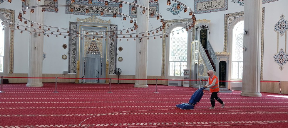 Kemer Belediyesi Temizlik İşleri Müdürlüğü, Kurban Bayramı öncesinde ilçe genelinde bulunan camilerde temizlik çalışması yaptı.
