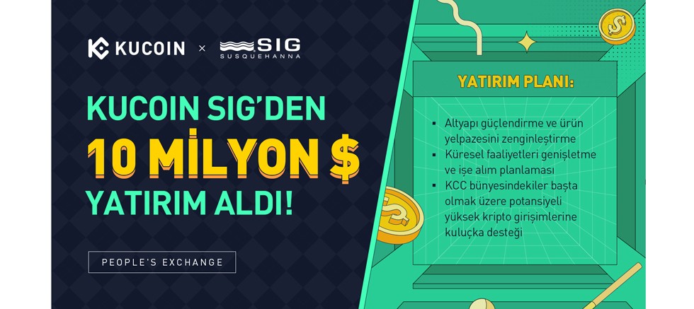 Dünyanın önde gelen kripto para borsalarından KuCoin, Susquehanna International Group'tan (SIG) stratejik bir yatırım aldığını duyurdu. Yaklaşık 10 milyon dolarlık yatırımın yanı sıra, iki taraf blockchain startuplarının kuluçkasında, KuCoin Token ve KuCoin Community Chain ekosisteminin inşasında da iş birliği yapacak.