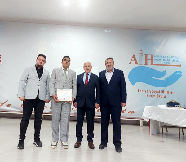 Milli Eğitim Bakanlığı, Din öğretimi Genel Müdürlüğü'nce 40 yıldır geleneksel olarak düzenlenen “Mesleki Yarışmalar” da Kumluca Anadolu İmam Hatip Lisesi öğrencileri geleneği bozmayarak, bu yıl da yarışmalara damga vurdu. Anadolu İmam Hatip Liseleri ve İmam Hatip Ortaokulları arasında, iki kategori olarak düzenlenen “Genç Sadâ Kur’an-ı Kerim’i Güzel Okuma Yarışması’’, bu yıl da heyecanlı bir bekleyişe sahne oldu. Kumluca Anadolu İmam Hatip Lisesi Fen ve Sosyal Bilimler Proje Okulu öğrencileri her iki kategoride de yarışarak, okullarını ve Kumluca'yı temsil ederek dereceleriyle gurur yaşattılar. Anadolu İmam Hatip Liseleri ‘’Genç Sada Kur’an-ı Kerim’i Güzel Okuma Yarışması’’, 22 okulun katılımıyla Antalya Anadolu İmam Hatip Lisesi Konferans Salonunda gerçekleştirildi. 11'er kişilik, 2 grup halinde gerçekleştirilen yarışmalarda, 1. grubun 1.'si Kumluca Anadolu İmam Hatip Lisesi Fen ve Sosyal Bilimler Proje Okulu 11.sınıf öğrencisi Hamza BİLGİLİ olurken, yarışmanın devamında ise 2. Grubun 1.si Prof. Dr. Raşit Küçük Anadolu İmam Hatip Lisesi öğrencisi Hasan BALABAN olmuştur. Finale kalan iki öğrenci arasındaki yarışta, Kumluca Anadolu İmam Hatip Lisesi Fen ve Sosyal Bilimler Proje Okulu öğrencisi Hamza BİLGİLİ, Antalya İl 2.'si oldu. İmam Hatip Ortaokulları arasında yapılan diğer ‘’Genç Sada Kur’an-ı Kerim’i Güzel Okuma Yarışması’’ ise, 3 grup halinde 35 okulun katılımıyla Şehit Volkan Canöz Anadolu İmam Hatip Lisesi Konferans Salonu'nda gerçekleştirilmiştir. Kumluca Anadolu İmam Hatip Lisesi Fen ve Sosyal Bilimler Proje Okulu, ortaokul 7.Sınıf öğrencisi Muhammed Enes Erdal, 1. grubun 1.'si olarak finale kalmıştır. Final yarışmasında Sinan-ı Ümmi İmam Hatip Ortaokulu öğrencisi Ramazan GEBEŞ Antalya İl 1.'si, Antalya Anadolu İmam Hatip Lisesi öğrencisi Adem GEBEŞ Antalya İl 2.'si, Kumluca Anadolu İmam Hatip Lisesi Fen ve Sosyal Bilimler Proje Okulu öğrencisi Muhammed Enes Erdal'da, Antalya İl 3.'sü oldu. ’Genç Sada Kur’an-ı Kerim’i Güzel Okuma Yarışmaları’’nda, İl finaline dereceleriyle damga vuran Kumluca Anadolu İmam Hatip Lisesi Fen ve Sosyal Bilimler Proje Okulu Müdürü Durmuş Yavuzer, dereceye giren öğrencilere, ailelerine ve öğrencileri yarışmaya hazırlayan Meslek Dersleri öğretmenlerine teşekkür ederek, önceki yıllarda olduğu gibi bu yıl da gurur yaşandığını ifade etti.