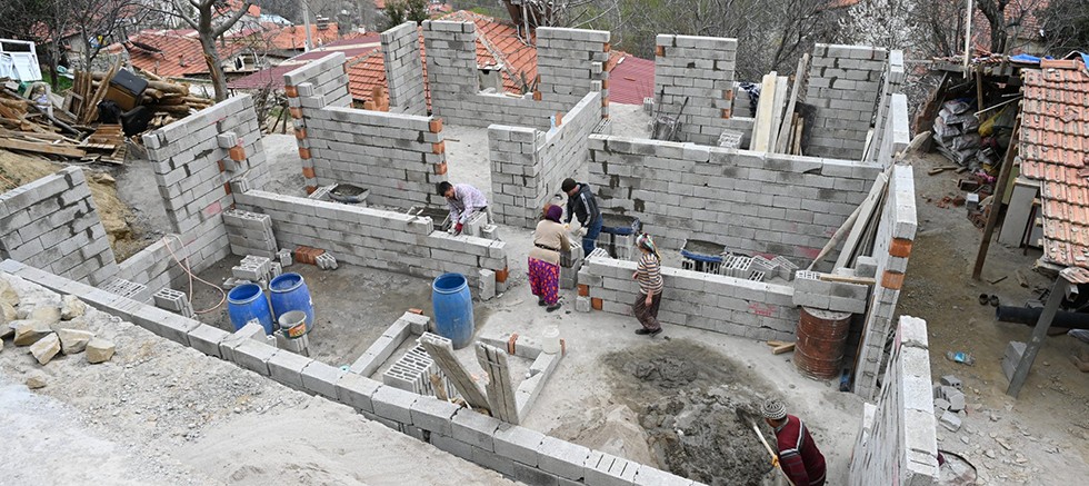 Fatma Sel, eski kerpiç evinin duvarlarının göçtüğünü, tadilatının mümkün olmaması dolayısıyla tamamen yıkıldığını söyledi. Yeni ev yapımı için Belediye Başkanı Şükrü Başdeğirmen’in briket ve malzeme desteğinde bulunduğunu dile getiren Sel, “Başkanımızdan Allah razı olsun. Başkanımız ne istesek veriyor. Kardeşlerimle yeni evi yapıyoruz” dedi.