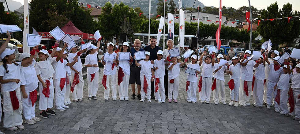 Saygı duruşunda bulunulmasının ardından Kemer Belediyesi Cumhuriyet Orkestrası tarafından İstiklal Marşı’mızın okunması ile başlayan programda, Kemer Belediyesi ile Kemer Milli Eğitim Müdürlüğü ve Halk Eğitim Müdürlüğü iş birliğince Kemer Belediyesi ATSO Eğitim ve Sanat Merkezi'nde açılan yaz kurslarına katılan 500 kursiyere sertifikaları verildi.