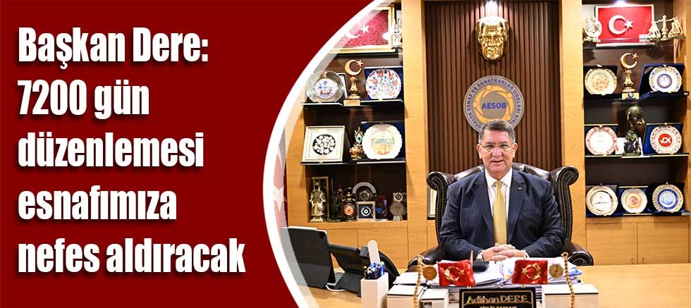 TESK Genel Başkan Vekili ve AESOB Başkanı Adlıhan Dere, “7200 gün düzenlemesi sosyal güvenlik sistemimize olan güveni artıracak ve esnafımıza hakkının teslimi olacaktır.” dedi.