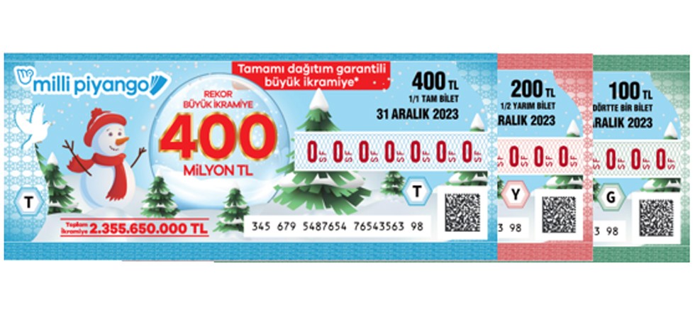 *Milli Piyango 2023 Yılbaşı Çekilişi’ne özel olarak, büyük ikramiyenin, satılan 4 çeyrek bilete ya da 2 yarım bilete denk gelmemesi durumunda, büyük ilramiyenin tamamı, bilet payına (tam, yarım, çeyrek) bakılmaksızın, ödülün isabet ettiği satılan bilet(ler) arasında eşit olarak paylaştırılacaktır.