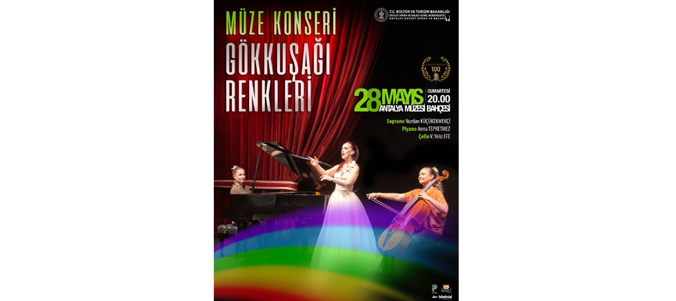 Antalya Devlet Opera ve Balesi, 28 Mayıs Cumartesi akşamı saat: 20.00’de Antalya Müzesi bahçesinde ‘Gökkuşağı Renkleri’ konserini sanatseverler ile buluşturacak. Soprano Nurdan Küçükekmekçi, piyanist Anna Tepretmez ve viyolonsel sanatçısı Veronika Yeliz Efe’nin sahne alacağı konserde ünlü bestecilerin eserleri seslendirilecek.