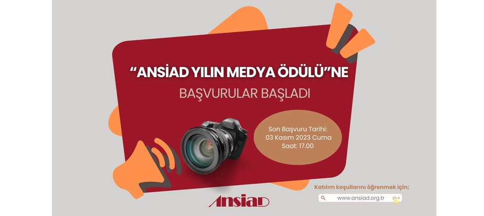 Yazılı, görsel, işitsel ve internet basını kategorilerini içeren geleneksel “ANSİAD YILIN MEDYA ÖDÜLÜ”ne başvurular başladı. Son başvuru tarihi 3 Kasım 2023 Cuma günü olarak belirlenirken, ödüller sahiplerine 13 Ocak 2024 Cumartesi günü gerçekleştirilecek olan ANSİAD 34. Kuruluş Yıldönümü Balosu ve Ödül Töreni’nde takdim edilecek.