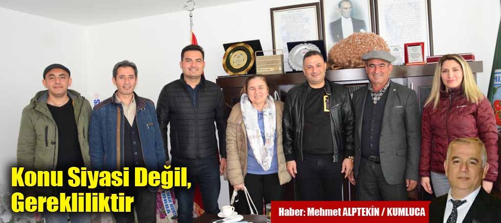 DSİ Antalya Bölge Müdür Yardımcısı Tuncay Aykan, DSİ Finike Şube Müdürü Mehmet Şen, Batı Antalya Sulama Birliği Başkanı Semra Torun ve beraberlerindeki heyet, Kumluca Ziraat Odası Başkanı Hidayet Kökce’yi ziyaret etti.