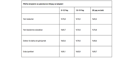 PKU’lu bireylerin ve yakınlarının ihtiyaç ve talepleri