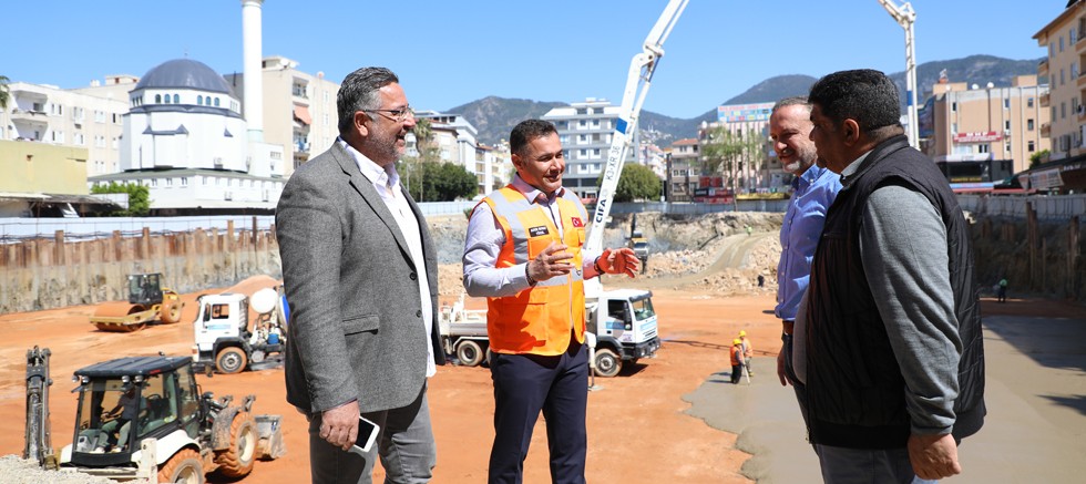 Cuma Pazarı’nda yapımı devam eden mega projeyi yerinde inceleyen Alanya Belediye Başkanı Adem Murat Yücel, “Alanya’nın ihtiyacı olan mega projemiz söz verdiğimiz tarihte hizmete girmiş olacak” dedi.
