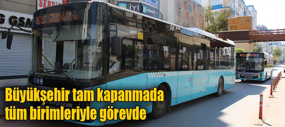 Antalya Büyükşehir Belediyesi, Cumhurbaşkanlığı genelgesi kapsamında 17 günlük tam kapanma döneminde ASAT, itfaiye, ulaşım, sosyal hizmetler, sağlık, çevre başta olmak üzere tüm birimleriyle görev başında olacak. Altyapıdan asfalta, temizlikten peyzaja, ulaşımdan sosyal yardımlara tüm hizmetler aksamadan sürecek. Toplu ulaşımda Büyükşehir Belediyesi’ne ait siyah plakalı otobüsler 31 hatta zorunlu çalışanlar için hizmet verecek.