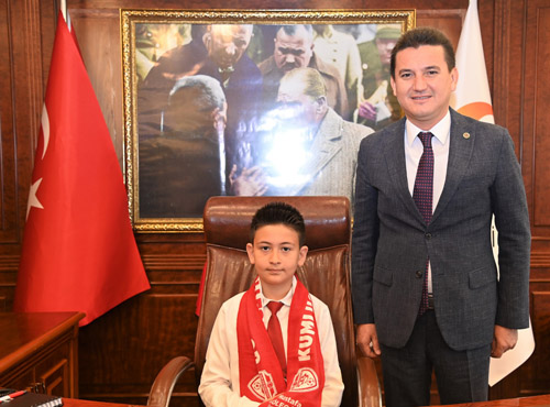 Belediye Başkanım Mustafa Köleoğlu, 23 Nisan dolayısıyla Belediye Başkanlığı koltuğuna oturan Adil Aras Duran'a başarılar diledi