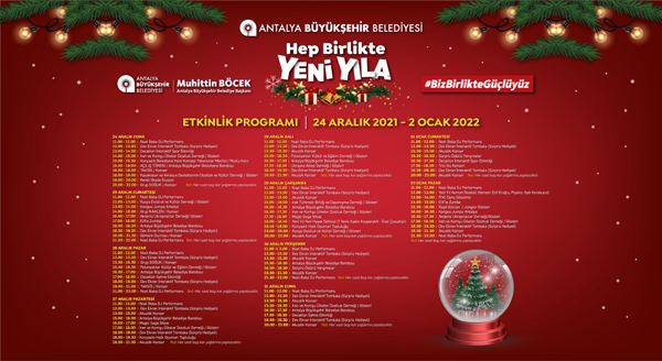 Gösteriler, konserler, maskotlar, yapay kar, yeni yıl pazarı, stantlar Antalyalıları bekliyor