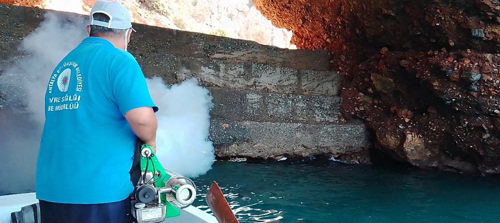 Büyükşehir Belediyesi, sıcakların başlamasıyla sinekle mücadele çalışmalarını denizden de yürütüyor. Alanya’da ekipler karadan müdahale şansı olmayan kıyıdaki su birikintilerinin olduğu kayalıklara denizden tekne ile müdahale ediyor. Tekneyle kıyıya yanaşan ekipler, sineklerin larva bırakabileceği kayalıklar arasındaki su birikintilerini ilaçlıyor. Deniz kıyısındaki mağara ve kovuklara sisleme yapılarak sineklerin çoğalması önleniyor.