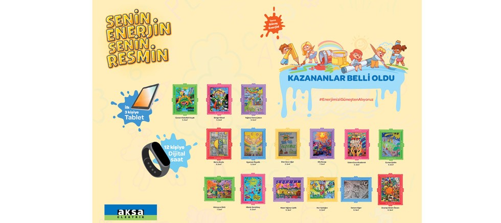 Yenilenebilir enerji konusunda çocukların farkındalıklarını artırmak ve bilinçlenmelerini sağlamak amacıyla düzenlenen yarışmanın sonunda 15 çocuk ödüllendirildi. İlk 3’e giren çocuklara tablet, 12 çocuğa da dijital saat hediye edildi. Yarışmada dereceye giren eserler, şirketin sosyal medya hesapları ve web sitesi aracılığıyla   duyuruldu. Aksa Elektrik’in web sitesi üzerinden eserlerin ziyaret etmek isteyenlere açık olacağı belirtildi.