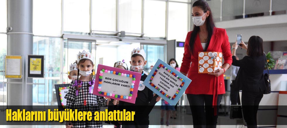 Öğretmenlerinin eşlik ettiği küçük öğrenciler, Belediye Başkanı Ümit Uysal’ın makamından Mali Hizmetler Müdürlüğü’ne birimleri tek tek dolaştı. Düdüklerini çalarak dikkatleri üzerlerinde toplayan çocuklar, taşıdıkları dövizlerle sahip oldukları hakları büyüklere anlattı. Öğrencilerin, belediyede son durağı ise Başkan Yardımcısı Hüseyin Sarı’nın makamı oldu.
