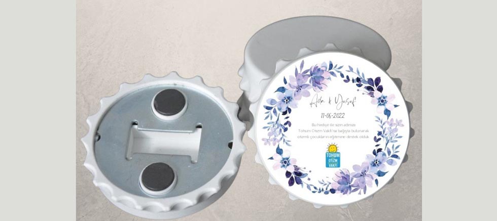 Tohum Otizm Vakfı, bu yıl hazırladığı nikah ürünleriyle düğün sezonu boyunca en mutlu anların şahidi olacak. Nikah davetiyeleri ve zarflarının yanı sıra doğal taş üzerine renkli baskı yapılarak elde edilen kare magnet ile çiftler, en özel günlerini sevdikleriyle hatıra olarak da paylaşabilecek. Düğün organizasyonlarının vazgeçilmezi olan menü ve masa kartları da istenilen renk ve tasarımlarda hazırlanarak düğün davet masalarını süsleyecek.