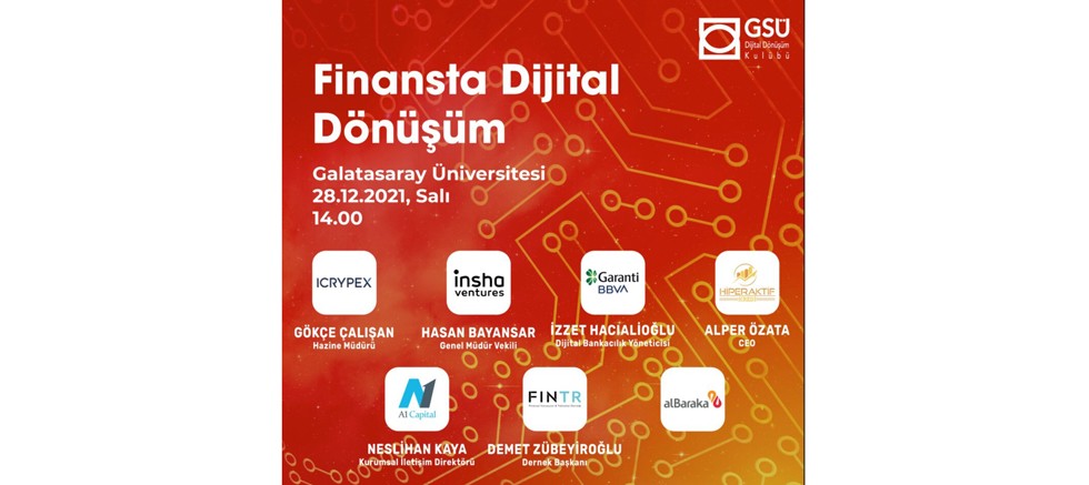 Finans dünyasındaki dijital dönüşümlerin ve teknolojilerin konuşulduğu Finansta Dijital Dönüşüm etkinliği Galatasaray Üniversitesi Dijital Dönüşüm Kulübü organizasyonuyla gerçekleşti. Finans sektörünün önemli şirketlerinden temsilcilerinin katıldığı etkinlik online olarak tamamlandı. Finansal Teknoloji ve İnovasyon Derneği ile birlikte Hiperaktif Kredi Danışmanlık tarafından desteklenen etkinliğe 300’ün üzerinde öğrenci katılım sağladı.