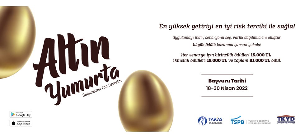 Takasbank, Türkiye Sermaye Piyasaları Birliği (TSPB) ve Türkiye Kurumsal Yatırımcı Yöneticileri Derneği (TKYD) iş birliğinde üniversite öğrencilerine yönelik bu yıl üçüncüsü gerçekleştirilecek ‘Altın Yumurta Üniversiteli Fon Sepetim Yarışması’nın başvuruları 18 Nisan’da başlıyor.  Üniversite öğrencilerini uzun vadeli yatırıma yönlendirmek, yatırım fonları hakkında bilgi sahibi olmalarını sağlamak ve Türkiye Elektronik Fon Alım Satım Platformu’nun (TEFAS) kullanım yaygınlığını artırmak amacını taşıyan yarışmaya, 18 – 26 yaş aralığında, Türkiye’de yerleşik bir üniversitede ön lisans veya lisansa kayıtlı öğrenciler katılabilecek. Ödüllü ‘Altın Yumurta Üniversiteli Fon Sepetim Yarışması’na başvurular IOS veya Android cihazlar üzerinden ‘Altın Yumurta Fon Sepetim’ uygulaması indirilerek yapılabilecek.