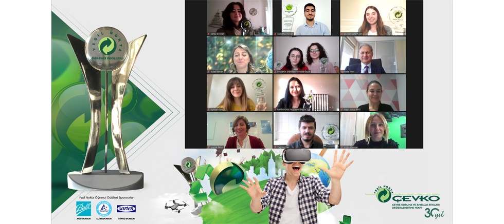 Çevrim içi olarak gerçekleştirilen ÇEVKO Vakfı Yeşil Nokta Öğrenci Ödülleri töreninde, 7 farklı üniversiteden 9 öğrenci, 3 farklı kategoride 7 projeyle Yeşil Nokta Öğrenci Ödülüne layık görüldü.