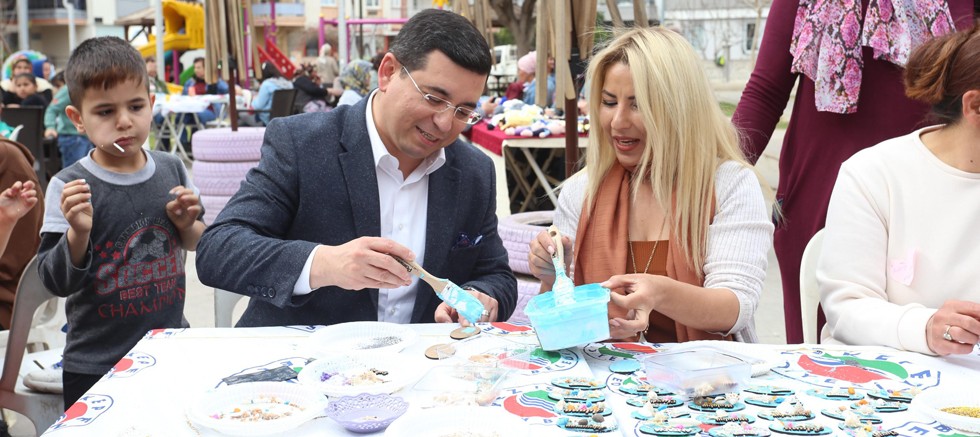 Üreten kadınlara destek olmak amacıyla önemli projeler yürüten Çiğdem Çiçekleri Kooperatifi, Antalya’da misafir edilen depremzede aileler içinde proje geliştirdi. Kepez Belediyesi’nin desteklediği proje kapsamında depremzede kadınlar bir araya gelerek magnet üretti. Kepez Belediye Başkanı Hakan Tütüncü de, üreten kadınları desteklemek amacıyla düzenlenen etkinliğe katıldı. Başkan Tütüncü, Çiğdem Çiçekleri Kooperatif Başkanı Çiğdem Bal ve yönetimini depremzede ailelere moral ve motivasyon için düzenledikleri projeler için teşekkür etti. Başkan Tütüncü, depremzede ailelerle konuştu, çocukları sevdi. Magnet yapımını öğrenen Başkan Tütüncü de, kooperatif başkanı Çiğdem Bal ile beraber magnet yaptı. Kepez Belediye Başkanı Hakan Tütüncü, gelirinin etkinliğe katılan depremzede kadınlara verileceği magnetlerden 500 tane satın aldı.