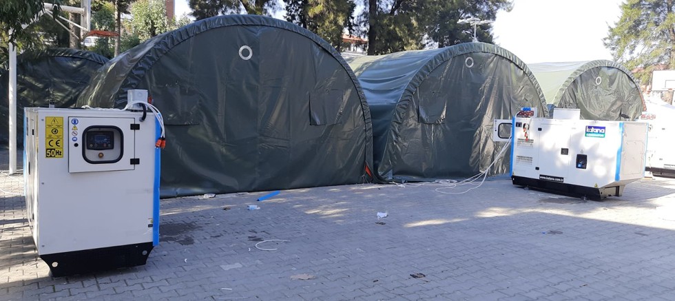 • Hatay Samandağ Suphi Güzey ilkokulu içerisinde depremzedeler için kurulan çadırların jeneratörleri kuruldu. Bağlantıları yapılarak çadır içlerine aydınlatma ve priz tesisatları çekildi.
