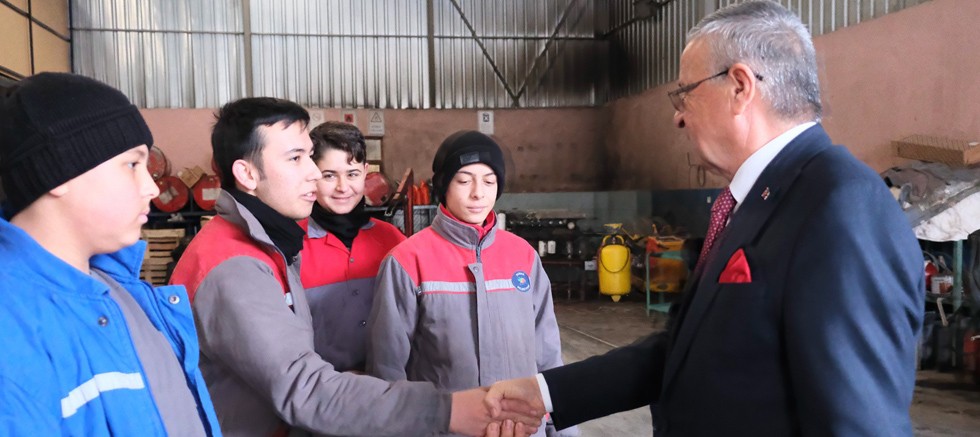 Fen İşleri Müdürlüğü ve diğer birimlerde görevli stajyerlerle de sohbet eden Başkan Topaloğlu, “Sanat okulunda öğrenim gören öğrencilerimiz Belediyemizde stajlarını yapıyorlar. Mesleklerini edinmelerinde ustaları da ellerinden gelen desteği veriyor. Tüm çalışanlarımıza sağlıklı günler diliyorum” dedi.