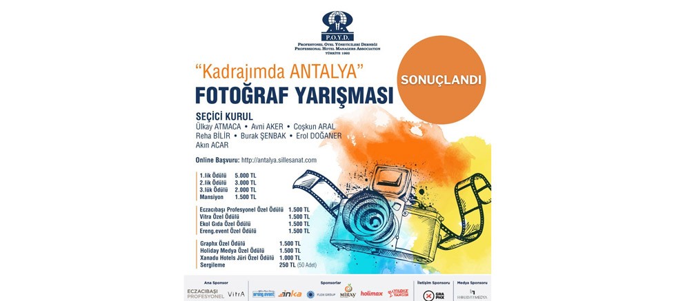Antalya'nın turizm tanıtım çalışmalarında kullanılmak ve  sektöre yeni fotoğraflar kazandırmak  amacıyla, Profesyonel Otel Yöneticileri Derneği'nin (POYD) 2021 yılında " Kadrajımda ANTALYA" adı altında başlattığı Fotoğraf Yarışması 31 Ocak 2022 günü sona erdi.