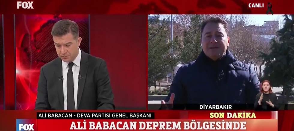 Deprem bölgesinde incelemelerini sürdüren DEVA Partisi Genel Başkanı Ali Babacan Diyarbakır’dan FOX TV yayınına bağlandı. Babacan şunları söyledi: