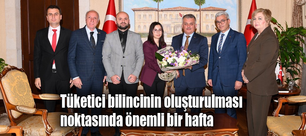 15 Mart Dünya Tüketiciler Günü ve 15-21 Mart Tüketiciyi Koruma Haftası etkinlikleri kapsamında Antalya Ticaret İl Müdürü ve İl Tüketici Hakem Heyeti Başkanı Halil Özşahan ile Tüketici Hakem Heyeti, Vali Ersin Yazıcı’yı makamında ziyaret etti. Ziyarette kurumun çalışmaları hakkında bilgi alan Vali Yazıcı, Tüketiciyi Koruma Haftası’nın tüketici bilincinin oluşturulması ve vatandaşların bilinçlendirilmesi noktasında önemine dikkat çekti.