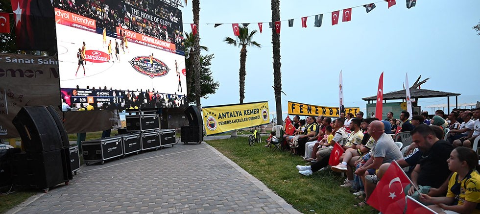 Kemer Belediyesi, Fenerbahçe Basketbol Takımının EuroLeague’de (THY Avrupa Ligi) Mocaco’yla karşılaştığı final maçı için dev ekran kurdu. Final maçını, Kemer Belediye Başkan Yardımcısı Mehmet Derya Baytekin vatandaşlarla birlikte izledi.