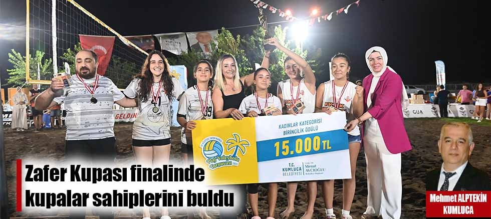 Kumluca Belediyesi tarafından bu yıl ikincisi düzenlenen ‘30 Ağustos Zafer Kupası Plaj Voleybolu Turnuvası’, Günay Sahil Tesisleri’nde oynanan final maçları ile sona erdi. Heyecan dolu final karşılaşmalarını; Kumluca Kaymakamı Bahadır Güneş, Kumluca Belediye Başkanı Uzm. Dr. Mesut Avcıoğlu, Kumluca Cumhuriyet Başsavcısı Gökhan Kıymacı, İlçe Jandarma Komutanı Binbaşı Erkan Özgür, İlçe Milli Eğitim Müdürü Yusuf Tekdemir, İlçe Sağlık Müdürü Mehmet Çiftçi, İlçe Müftüsü Bedir Aydın, AK Parti İlçe Başkanı Bekir Paslıkılıç, Demokrat Parti İlçe Başkanı Ramazan Hoyrazlı, Milliyetçi Hareket Partisi İlçe Başkanı Ömer Tekin, Saadet Partisi İlçe Başkanı Ergün Eren, Yeniden Refah Partisi İlçe Başkanı Nasuh Yaşar, Büyük Birlik Partisi İlçe Başkanı Mustafa Ay, Kumluca Belediye Spor Başkanı Mustafa Öztürk, Kumluca Eğitim Vakfı (KUMEV) Yönetim Kurulu Üyesi Gökhan Evran, belediye meclis üyeleri; Aydın İlkuçan, Ayşegül Alpaslan, Bekir Bircan, Faik İlter, Fevzi Duranal, Hakkı Arıkan, mahalle muhtarları ve çok sayıda vatandaş izledi.