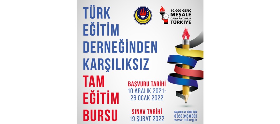 19 Şubat 2022 tarihinde, TED Okullarının bulunduğu 40 il/ilçede düzenlenecek olan Tam Eğitim Bursu Sınavı için başvuru süreci başladı. 28 Ocak tarihine kadar https://connected.ted.org.tr/schoolarships adresinden başvuruların yapılabileceği sınavda başarı gösteren maddi imkanları kısıtlı fakat akademik olarak başarılı yaklaşık 200 öğrenci ortaokuldan başlayarak Tam Eğitim Bursu kapsamında eğitim alacak.