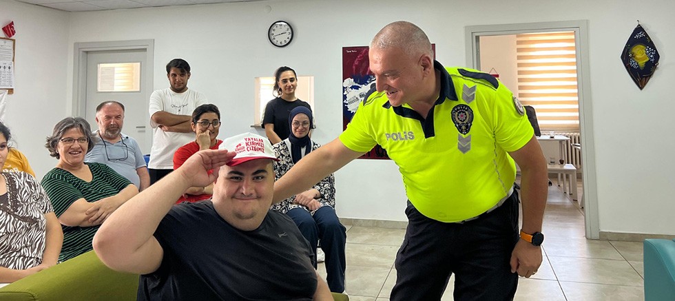 Eğitim faaliyetinin sonunda, özel gençlerimize “Yayalar Kırmızı Çezgimiz” mottolu şapkalar hediye edilmiş, ayrıca polis ekip otosu tanıtılarak özel gençlerimizin trafik polisliği hakkında bilinç kazanmaları sağlanmıştır.
