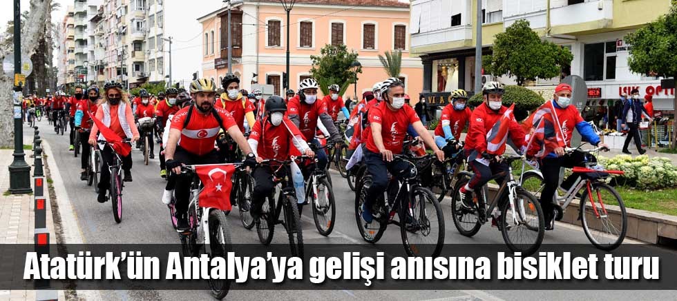 Antalya’da Muratpaşa Belediyesi, Gazi Mustafa Kemal Atatürk’ün Antalya’ya gelişinin 91’inci yıl dönümünü, “Hoş geldin Atam” bisiklet turuyla kutladı. Tur için bisikletçiler, öğle saatlerinde üzerinde Atatürk siluetinin bulunduğu kırmızı-beyaz tişörtleri ve bisikletlerine astıkları Türk bayraklarıyla Konyaaltı Caddesi’nde bir araya geldi. Hazırlıkların tamamlanmasının ardından yaklaşık 400 bisikletçi Muratpaşa Atatürk Kent Meydanı’na uzanan 11 kilometrelik tur için pedala bastı.
