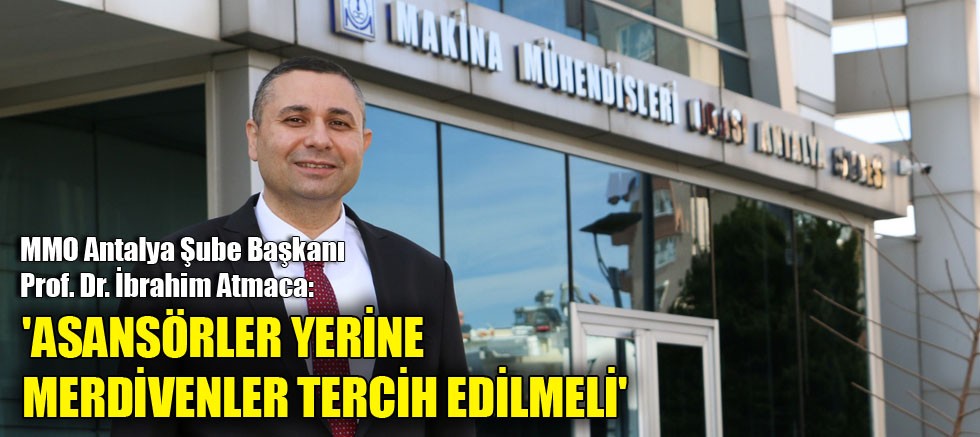 MMO Antalya Şube Başkanı Prof. Dr. İbrahim Atmaca, son dönemde tekrar hızla artan Covid-19 salgını dolayısıyla, ofis ve işyerlerinde zorunlu haller dışında asansör yerine merdivenlerin tercih edilmesi gerektiğini ifade ederek, 'birtakım önlemler alınmalı ve asansörlerde taşınan insan sayısı azaltılmalı' dedi.