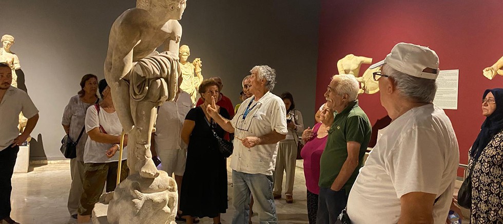 “İlk insan yaşamının buluntularına sahip Karain’den başlayarak paleolitik çağlardan günümüze kadar geçen sürede taşın ve insanın evrimini mitolojik hikâyelerle anlatıyoruz. Muratpaşa Belediyesi ile iki yıl önce başladığımız ‘Antik Kentlerimizi Tanıyoruz’ projesi kapsamında öğrencilerle başladığımız geziler şimdi 65 yaş üstü bireylerle devam ediyor. Bizler yediden yetmişe herkesin tarihe erişmesine, yaşadığımız coğrafyayı tanımalarına katkı vermek gayretindeyiz.”