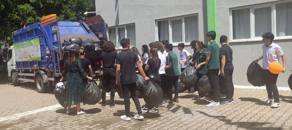 Öğrenciler, bu eğitim yılında da evlerinde, okullarında ortaya çıkan atıkları çöpe atmayıp biriktirdi. Mayıs sonu itibariyle, öğrenciler 235 kilogram plastik ambalaj atığı, 2 bin 387 mavi kapak ve 280 kilogram pil topladı. Toplanan atıklarla okul bahçesinde ‘atık dağı’ oluşturuldu.