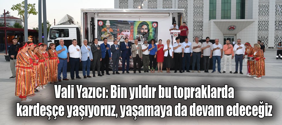 İçimizdeki hainlerin birliğimize zarar vermeye çalıştığını söyleyen Vali Yazıcı şunları kaydetti: “İçimizdeki hainler bizim birliğimizi, beraberliğimizi ve dirliğimizi hiçbir zaman bozamaz. Bunu herkes böyle bilsin. Bizim kardeşliğimize halel getiremez. Biz uzun yıllardır farklı kültürlerin bir arada yaşadığı zengin bir kültüre sahibiz. Bu topraklar bizlerin. Bu topraklar Türk milletinin. Bizlere hainlik yapmak isteyen, bizleri ayrıştırmak isteyenler buradaki birlik ve beraberliğimizi görüp inşallah ders alırlar.”