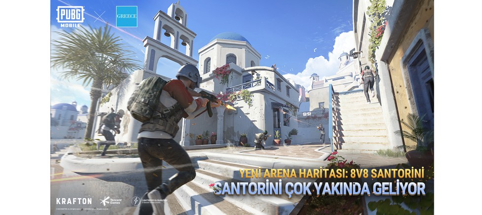 Dünyanın en popüler mobil oyunlarından biri olan PUBG MOBILE, Yunanistan Ulusal Turizm Örgütü (GNTO) işbirliği ile oyuncular için çarpıcı Yunan adası Santorini'yi temel alan yepyeni bir arena haritasının yayınlanacağını duyurdu.