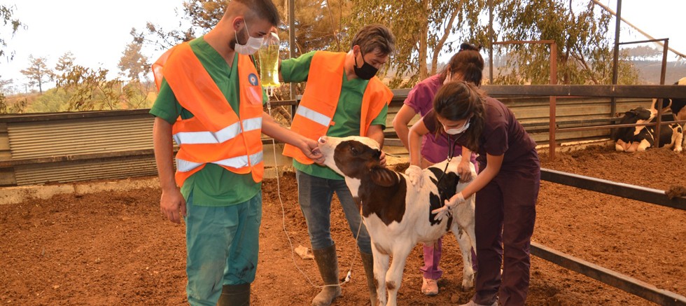 Antalya Büyükşehir Belediyesi yedi gündür süren Manavgat yangınının söndürülmesi için gece gündüz mücadele ediyor. Yangında çok sayıda hayvanın telef olması sonucu harekete geçen Büyükşehir Belediyesi Tarımsal Hizmetler Daire Başkanlığı Hayvan Sağlığı Şube Müdürlüğüne bağlı veteriner hekimler ile gönüllü veteriner ekipleri bölgede çalışmalarını sürdürüyor.