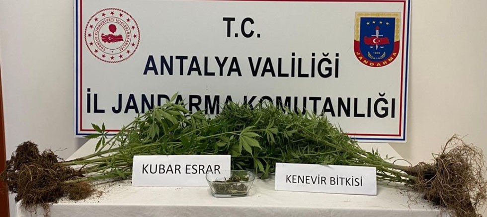 "Manavgat Cumhuriyet Başsavcılığı koordinesinde; Antalya İli Manavgat ilçesi Hatipler Mahallesinde, uyuşturucu madde ile mücadele kapsamında M.D. isimli şahsın kenevir bitkisi ektiği tespit edilmesi üzerine Manavgat KOM Timi ve Side J.Krk.K.lığı tarafından yapılan operasyonla şahıs yakalanmıştır. Şahsın yapılan üst ve ev aramasında 6 gram esrar, 9 kök kenevir bitkisi ele geçirilmiştir. Olay ile ilgili olarak adli tahkikata başlanılmıştır. Antalya il Jandarma komutanlığı olarak Uyuşturucu ile mücadelemiz azim ve kararlılıkla devam edecektir.