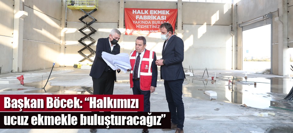 Fabrika alanında incelemelerde bulunan Başkan Muhittin Böcek Antalya Büyükşehir Belediyesi iştiraki EKDAĞ Yönetim Kurulu Başkanı Hasan Gökçe’den çalışmalar hakkında bilgi aldı. Halk Ekmek’e olan talebin artması üzerine bu fabrikayı kurma kararı aldıklarını söyleyen Başkan Muhittin Böcek, “Kendi öz kaynaklarımızla 20 milyon liraya mal olacak kendi Halk Ekmek fabrikamızı açacağız. Nisan ayı içerisinde üretime geçmiş olmayı hedefliyoruz. 120 bin kapasiteli böylesi bir ekmek fabrikasını tüm vatandaşlarımızın hizmetine sunacağız. Belediye olarak sübvanse edeceğiz. Öz kaynaklarımızla destek olacağız” dedi.