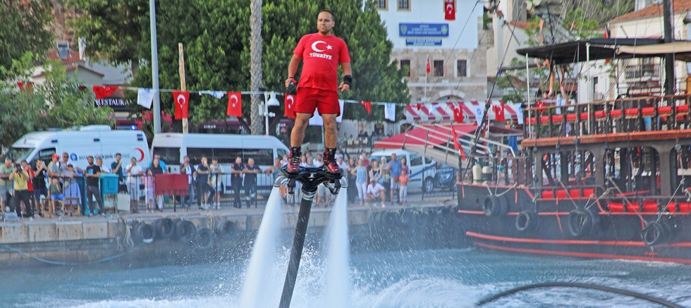 Renkli görüntülerin ortaya çıktığı heyecanlı yarışmalara Antalyalılar ve turistler yoğun ilgi gösterdi. Yüzme yarışı, denize atılan çapayı çıkarma yarışlarında yarışmacılar kıran kırana mücadele etti. Etkinlikler kapsamında yapılan flyboard gösterisi de vatandaşlar tarafından heyecanla izlendi. Su yüzeyinde gerçekleşen akrobatik hareketler izleyenleri büyüledi.