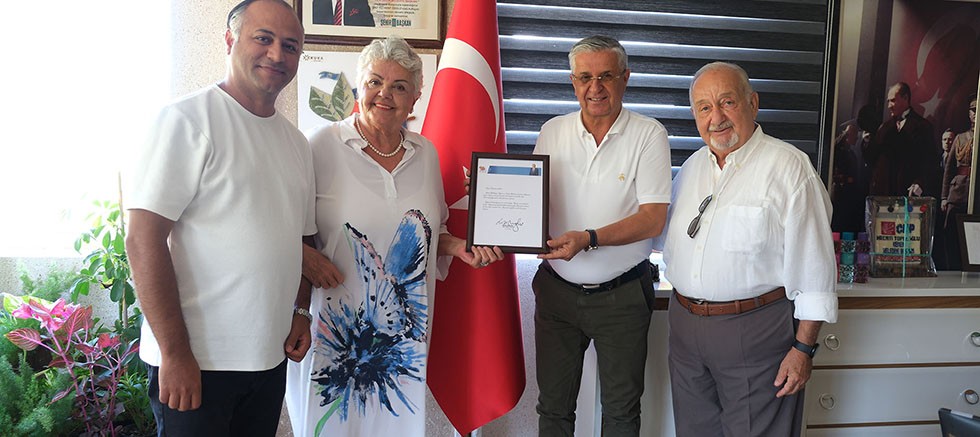 Kemer’de gençlere ücretsiz sanat kurslarının verildiği merkeze piyano bağışı ile katkıda bulunan Ayşe Yıldız Karaman’a yaptıkları anlamlı bağış nedeni ile teşekkür eden Kemer Belediye Başkanı Necati Topaloğlu, Ayşe Yıldız Karaman eşi Sertaç Karaman’a teşekkür belgesi takdim etti.
