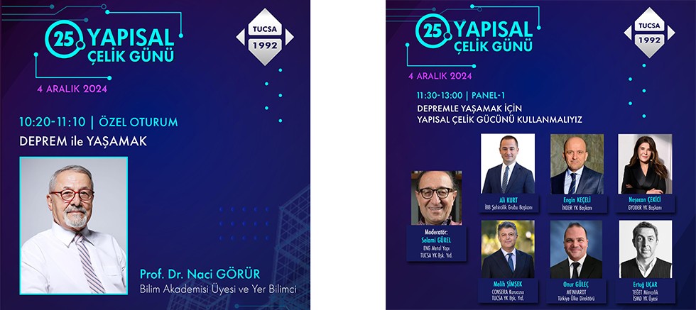 Çelik yapıları temsil eden tek sivil toplum örgütü olan Türk Yapısal Çelik Derneği (TUCSA) tarafından 4 Aralık 2024 tarihinde düzenlenecek 25.Yapısal Çelik Günü; ülkemizin en önemli sorunu deprem tehdidine dikkat çekerken çelik yapıda sivil toplum seferberliğini başlatmayı amaçlıyor. Açış konuşmalarının ardından, Prof. Dr. Naci Görür’ün ‘Deprem ile Yaşamak’ başlıklı özel oturumuyla başlayacak olan zirve; yapı sektöründe inisiyatif almaya hazır, sektörün en önemli sivil toplum kuruluşlarını bir araya getirecek.