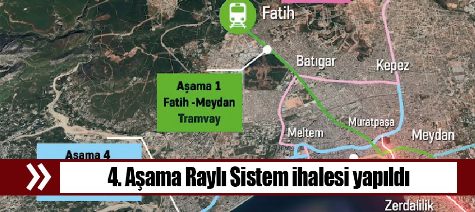 4. Aşama Raylı Sistem Hattı’nın ilk etabı, Konyaaltı ilçesinde Akdeniz Bulvarı’ndan (Serbest bölge) başlayacak. Akdeniz Bulvarı üzerinden Atatürk Bulvarı’nı takip edecek 4. Aşama Raylı Sistem Hattı, Antalyaspor Kavşağı’ndan sonra yerin 30 metre altına girecek. Yer altından Meltem’e dönerek, Antalya Eğitim Araştırma Hastanesi ve Defterdarlık önüne ulaşacak. Yine yer altından Güllük-100. Yıl’ı keserek Muratpaşa Cami’ne uzanan hat, Antalya Büyükşehir Belediyesi önünden geçtikten sonra Kızılırmak Caddesi üzerinde yerin üstüne çıkarak Kepez Belediyesi önünden Sakarya Bulvarı Kavşağı’nda 3. Aşama Raylı Sistem Hattı’na bağlanacak. 4. Aşama Raylı Sistem Hattı projesiyle Antalya ilk kez metro ile tanışacak.