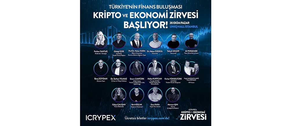 Türkiye'nin öncü kripto para platformlarından ICRYPEX, 20 Ekim Pazar günü Uniq Hall’de sektör profesyonellerinin buluşacağı “Kripto ve Ekonomi Zirvesi” düzenleyecek. Kripto para ve ekonomi dünyasının bir araya geleceği zirvede; blok zinciri, dijital varlıklara yönelik öngörüler, yapay zeka ve ekonomideki güncel gelişmeler masaya yatırılacak.